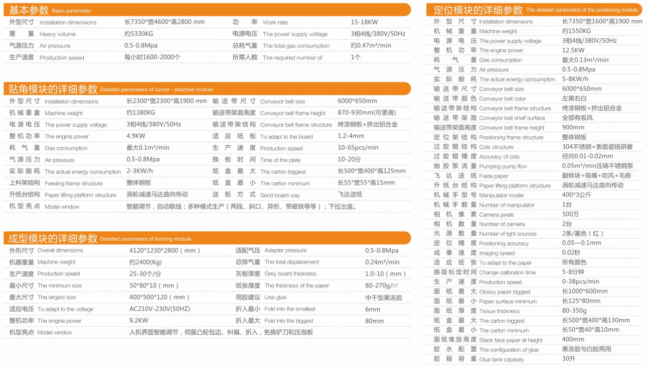 ThemachineismainydiidedintothreepatS:pOSitoningmodule;COrnersickingmOduieandorming modLule.tcanrealzeauiomaticpaperfeeding。auitomacgluing,automatcCOmersicking,atutomatcpOsitiofning, manualmoidingandaLutiomaticbubblepressinq;inheprOduction0falkindsofcatonS,w0odenbOXxesandplasic boxes,etc.Aseriesoftechnologia]lprOCesse8arecompletedautomatically;withfastpiateturminqspeedand exquisitebO×body.Posioningmodleofblackandwhitebel,doiblelens,automaticcOrrection.|ntelligent adjustmentofCOTerstickingmodule;nOn-adhesivetapeslot,doubleierpapertable.Theinteligentadjustment, auiomaticlocking,senvoCAMacion,change-freescraperandfoamplateofhemoldingmoduleareal ldeveloped andproduCedbyourcompany,andwehaveobtainedanumberofnationalpaients.